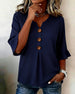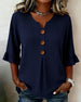 SPEZIFIKATIONEN Oberteil Typ: Blusen Stil: Zwanglos Material: Baumwollmischungen Anlass: Täglich Ausschnitt: V-Ausschnitt Muster Typ: Einfarbig Ärmel Typ: Flare Ärmel Ärmellänge: 3/4 Ärmel Passform Typ: Normal Jahreszeit: Frühling,Sommer Einzelheiten: Knöpfe Paket enthält: 1 x Bluse GRÖSSENTABELLE (cm) Größe Brsutmfang Länge S 92 65 M 96...