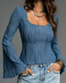 Bluse Einfach Quadratischer Ausschnitt Langarm