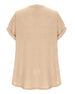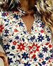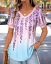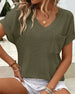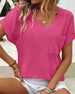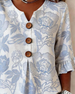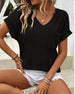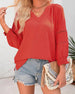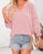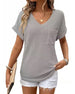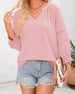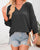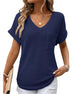 Bluse Damen 3/4-Puffärmel Casual V-Ausschnitt T-Shirts plissiert locker ausgeschnitten