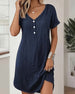 SPEZIFIKATIONEN Stil: Zwanglos Material: Baumwollmischungen Kleid Typ: Gerades Kleid Kleid Länge: Oberhalb des Knies Ausschnitt: V-Ausschnitt Muster Typ: Einfarbig Ärmel Typ: Regulärer Ärmel Ärmellänge: Kurze Ärmel Einzelheiten: Knöpfe,Gerafft Passform Typ: Normal Jahreszeit: Frühling,Sommer Anlass: Täglich Paket enthält: 1 x Kleid GRÖSSENTABE...