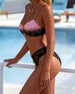 SPEZIFIKATIONEN Stil: Sexy Material: 15% Elasthan,85% Polyester Anlass: Urlaub Ausschnitt: Halfter Oberteil Typ: Bikini Büstenhalter Typ: Dreieck Unterteil Typ: Konventionell Passform Typ: Normal Jahreszeit: Frühling,Sommer,Herbst,Winter Einzelheiten: Kordelzug Paket enthält: 1 x Bikini GRÖSSENTABELLE (cm) Größe Brsutmfang Taille Hüfte...