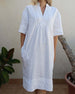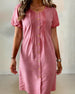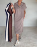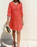 Kleid V-Ausschnitt Plissiert Baumwolle Und Leinen