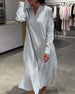 SPEZIFIKATIONEN Stil: Zwanglos Material: Baumwollmischungen Kleid Typ: Gerades Kleid Kleid Länge: Maxi Ausschnitt: V-Ausschnitt Muster Typ: Gestreift Ärmel Typ: Regulärer Ärmel Ärmellänge: Lange Ärmel Einzelheiten: Schlitz Passform Typ: Normal Jahreszeit: Frühling,Sommer Anlass: Täglich Paket enthält: 1 x Kleid GRÖSSENTABELLE (cm) Größe Brsu...