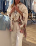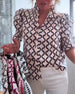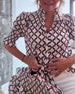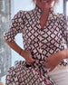 Kleid Französisch Laterne Ärmel Reverskragen Bedruckt