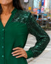 Bluse Spitzenbesatz Runder Halsausschnitt