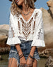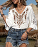 SPEZIFIKATIONEN Oberteil Typ: Blusen Stil: Boho Material: Baumwollmischungen Anlass: Täglich Ausschnitt: V-Ausschnitt Ärmel Typ: Flare Ärmel Ärmellänge: 3/4 Ärmel Passform Typ: Normal Jahreszeit: Frühling,Sommer Einzelheiten: Aushöhlung Paket enthält: 1 x Bluse GRÖSSENTABELLE (cm) Größe Brsutmfang Länge S 92 65 M 96 66.5 L 100 68 XL ...