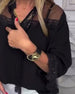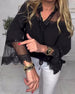 Bluse Glockenärmel Runder Halsausschnitt Feiner Glitzer