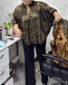 Bluse Stilvoll Lockere Passform Leopardenprint Rundhalsausschnitt