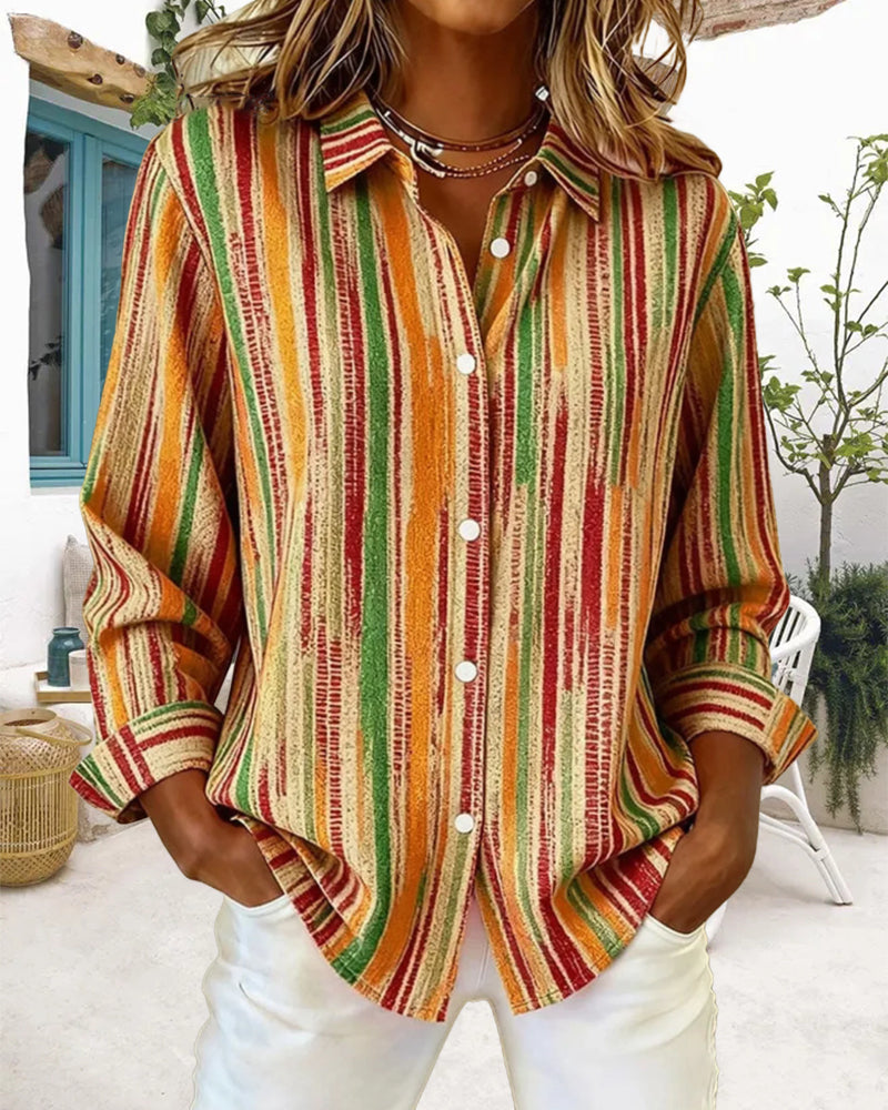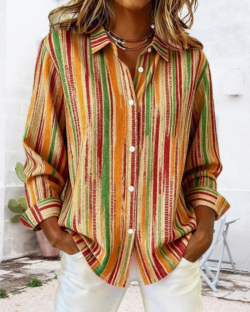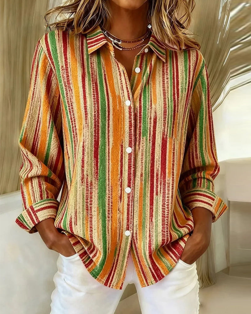 NEU Icon1 Farbenfrohes gestreiftes Casual-Langarmhemd