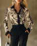 Langärmlige Bluse mit unregelmäßigem Fledermaus-Print
