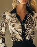T-Shirt Fake Zweiteiler Schnürung Leopardenmuster