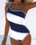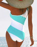 Badeanzug, lässig, gestreift, V-Ausschnitt, einteilig