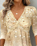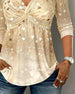 Top V-Ausschnitt Langarm Kink Gedruckt