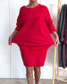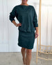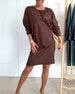 Schlichtes, einfarbiges, elegantes Kleid mit langen Ärmeln und Tasche