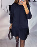 Lässiges, einfarbiges pullover-netzkleid-set mit hohem kragen