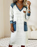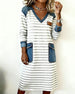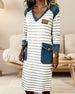 Icon1 Kleid Mode Denim Patchwork V-Ausschnitt