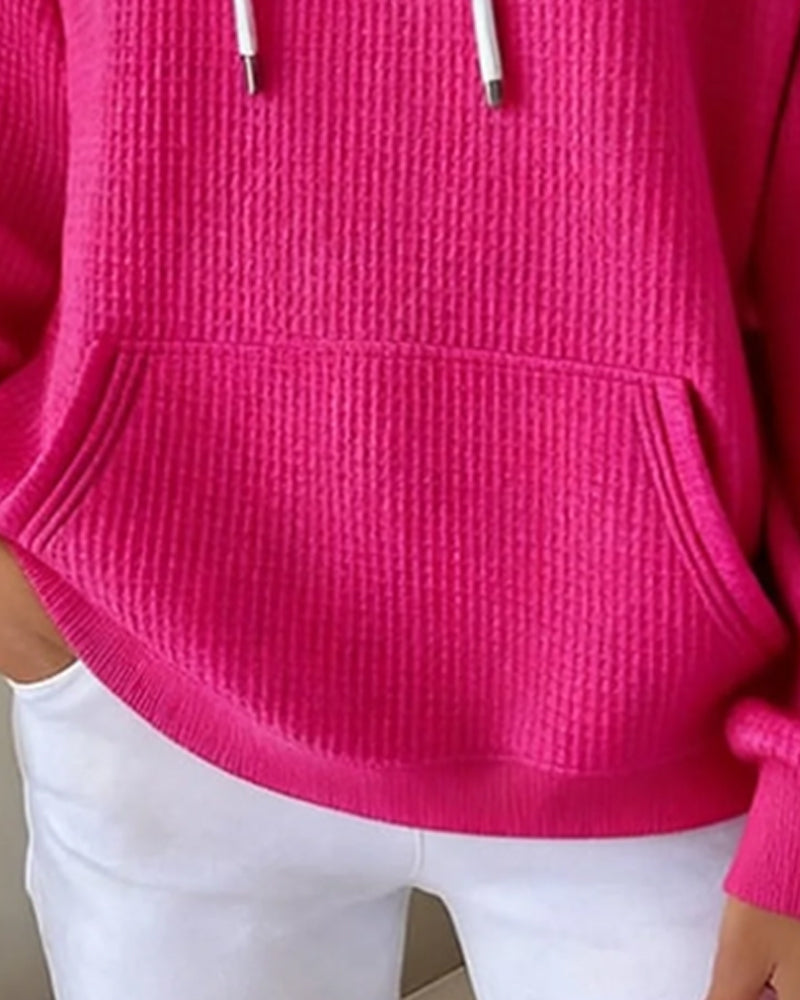 Sweatshirt lässig V-Ausschnitt mit Kapuze einfarbig locker
