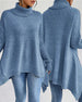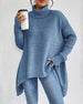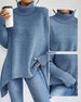 Lässiges, einfarbiges pullover-netzkleid-set mit hohem kragen