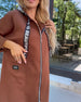 Lässiger mantel mit kapuze und kordelzug im buchstabenmuster