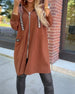 Schlichtes, einfarbiges, elegantes Kleid mit langen Ärmeln und Tasche