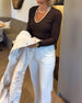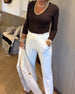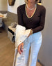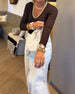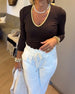 Icon1 Modisches Top mit V-Ausschnitt in Kontrastfarbe