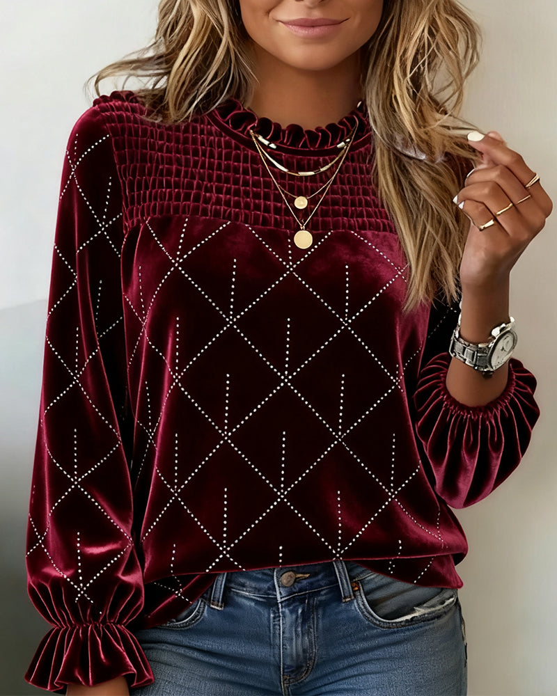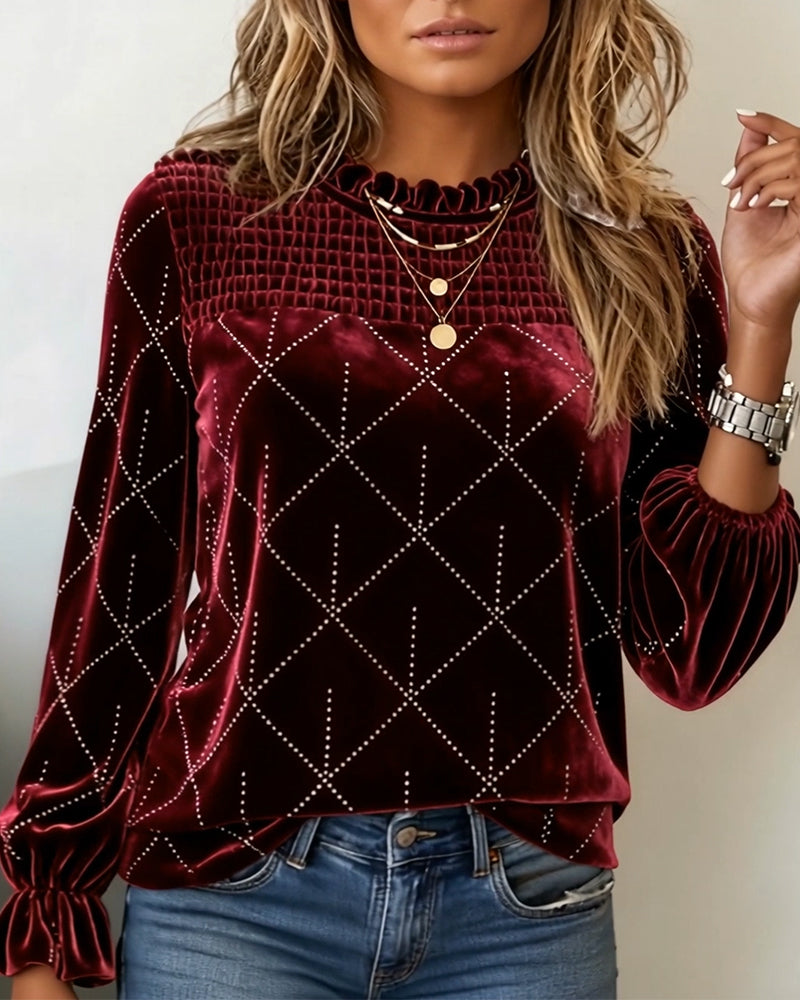Langärmlige Bluse mit unregelmäßigem Fledermaus-Print