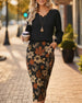 Langärmlige Bluse mit unregelmäßigem Fledermaus-Print