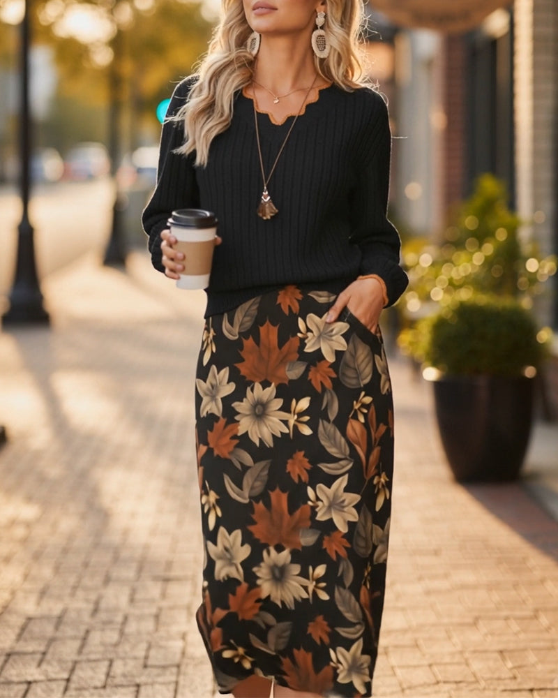 Lässiges, einfarbiges pullover-netzkleid-set mit hohem kragen