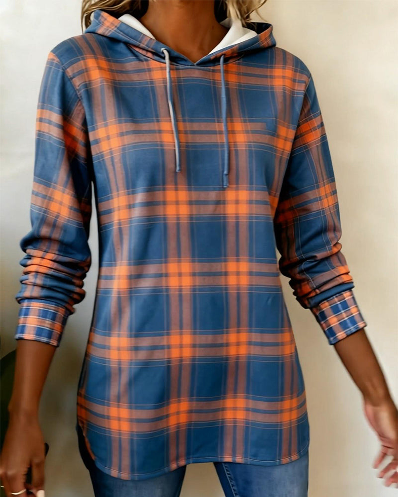 NEU Icon1 Sweatshirt Karo Druck Zugband Mit Kapuze