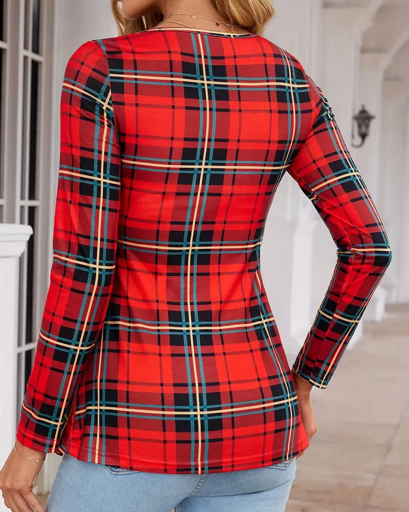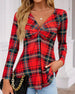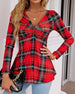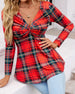 NEU Icon1 Top V-Ausschnitt Geringeltes Karo Langarm