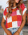 SPEZIFIKATIONEN Kategorie: Pullover Stil: Zwanglos Material: 65% Polyester, 30% Viskose, 5% Spandex Ausschnitt: Rundhalsausschnitt Muster Typ: Kariert,Farbblock Ärmel Typ: Regulärer Ärmel Ärmellänge: Kurze Ärmel Passform Typ: Normal Anlass: Täglich Jahreszeit: Frühling,Sommer Paket enthält: 1 x Pullover GRÖSSENTABELLE (cm) Größe Br...