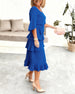 SPEZIFIKATIONEN Stil: Elegant Material: Baumwollmischungen Kleid Typ: A-Linie Kleid Länge: Midi Ausschnitt: Rundhalsausschnitt Muster Typ: Einfarbig Ärmel Typ: Geschlitzte Ärmel Ärmellänge: Halbe Ärmel Einzelheiten: Rüsche Passform Typ: Normal Jahreszeit: Frühling,Herbst Anlass: Täglich Paket enthält: 1 x Kleid GRÖSSENTABELLE (cm) Größe B...