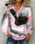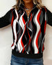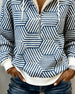 Sweatshirt Revers Knopf Gedruckt Langarm