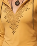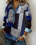 Elegante unifarbene Bluse mit Patchwork-Details und V-Ausschnitt