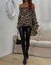 T-Shirt Fake Zweiteiler Schnürung Leopardenmuster