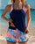 Badeanzug lässig Tasche V-Ausschnitt bedruckt zweiteilig