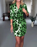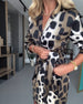 Kleid Kurzärmlig V-Ausschnitt Leopardenmuster