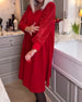 SPEZIFIKATIONEN Stil: Elegant Material: Samt Kleid Typ: A-Linie Kleid Länge: Midi Ausschnitt: V-Ausschnitt Muster Typ: Einfarbig Ärmel Typ: Regulärer Ärmel Ärmellänge: Lange Ärmel Passform Typ: Normal Jahreszeit: Herbst, Winter Anlass: Täglich, Urlaub Paket enthält: 1 x Kleid GRÖSSENTABELLE (cm) Größe Büste Länge Ärmel Schultern S 90...