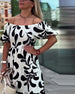 Icon1 Kleid Elegant Schulterfrei Bedruckt