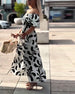 Bedrucktes langes Kleid mit V-Ausschnitt und Halbarm