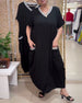 Lockeres langes Kleid mit seitlichem Schlitzrevers