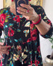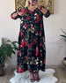 Bedrucktes langes Kleid mit V-Ausschnitt und Halbarm