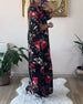 Langes, bedrucktes Kleid mit V-Ausschnitt und kurzen Ärmeln