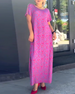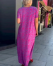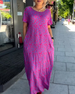 Langes, bedrucktes Kleid mit V-Ausschnitt und kurzen Ärmeln