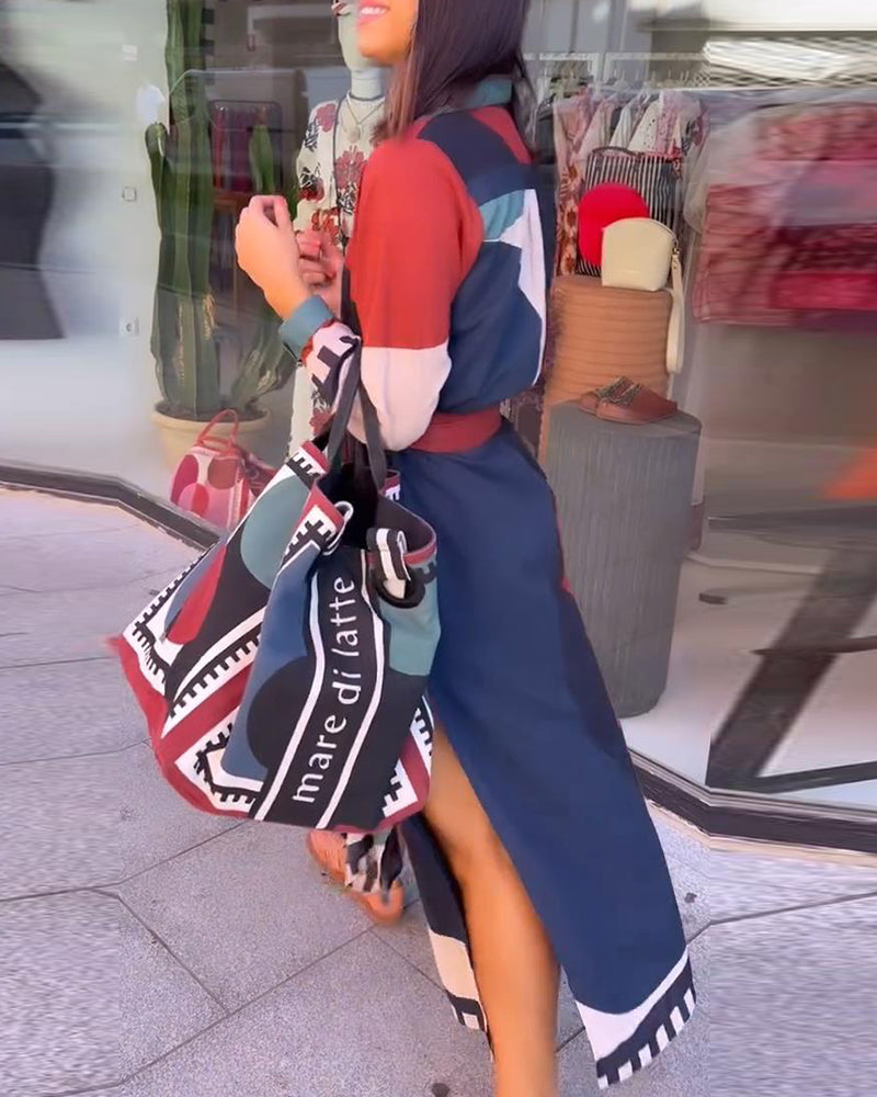 Icon1 Lässiges kleid mit farbblock-print und reversschnürung