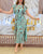 Langes Damenkleid mit V-Ausschnitt und bedruckter Taille
