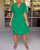 Einfarbiges, tailliertes freizeitkleid mit v-ausschnitt und schmetterlingsärmeln