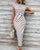 Modisches, schmales kleid mit streifenmuster und trägern und raglanärmeln