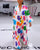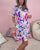 Buntes Freizeitkleid mit Blumendruck und Glockenärmeln