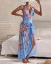 Bedrucktes langes Kleid mit V-Ausschnitt und Halbarm